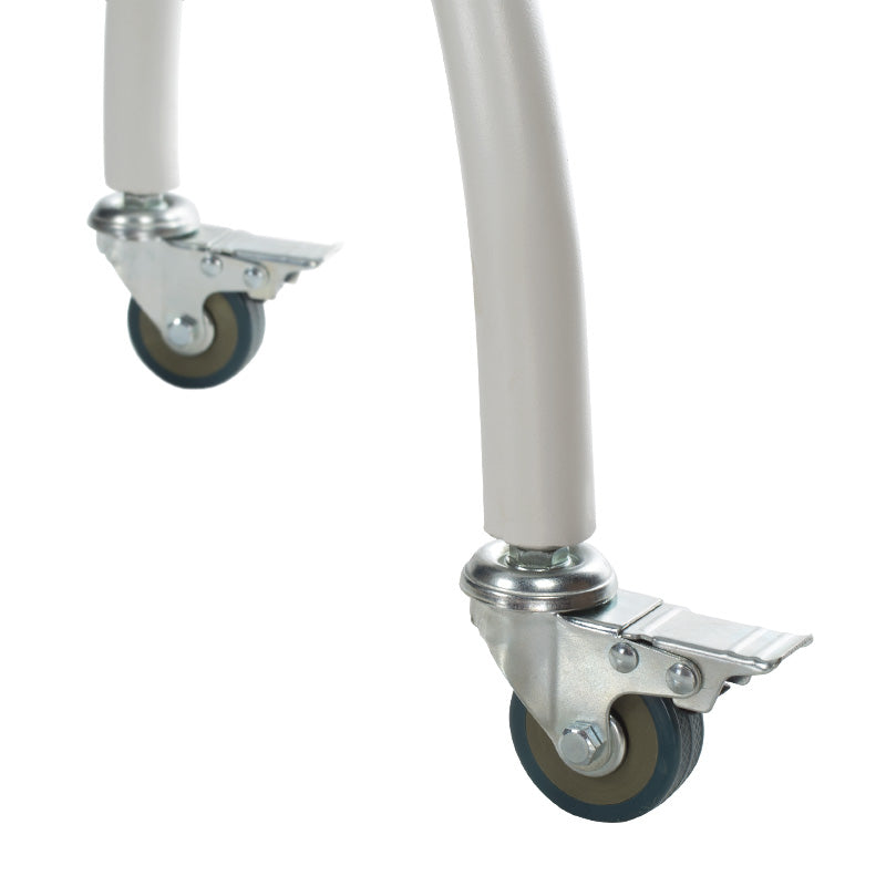 La mesa tiene 4 ruedas prácticas que facilitan el desplazamiento y garantizan comodidad en el trabajo. Otra ventaja de esta mesa portátil es su capacidad de plegarse, lo que permite ahorrar espacio, algo especialmente importante en espacios pequeños o para transporte en un gabinete móvil.
