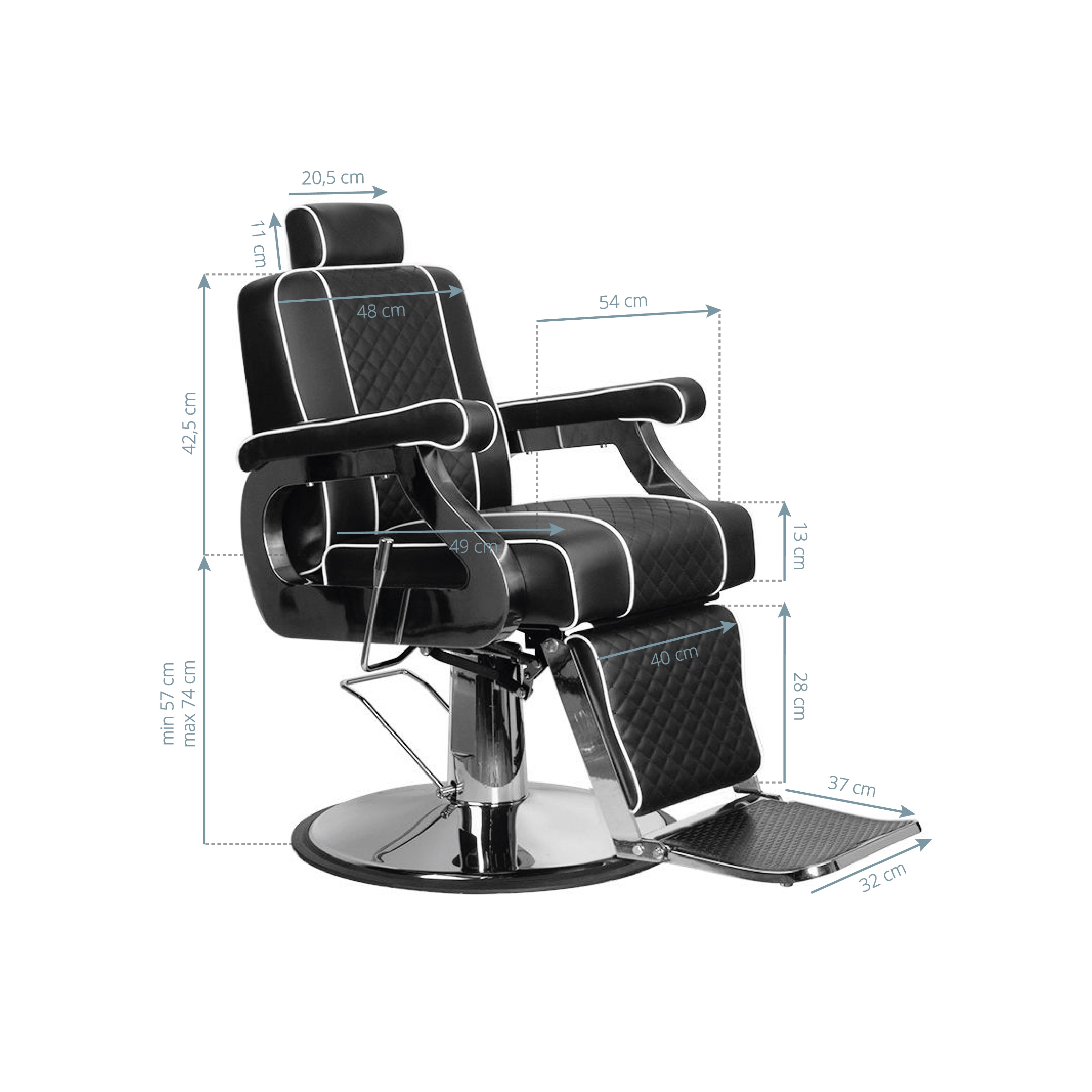 Con ajuste de subida y bajada, respaldo reclinable y reposapiés ajustable, la Silla de Barbero Paulo permite a sus clientes relajarse en una posición reclinada y conveniente, a pesar de sus dimensiones compactas.