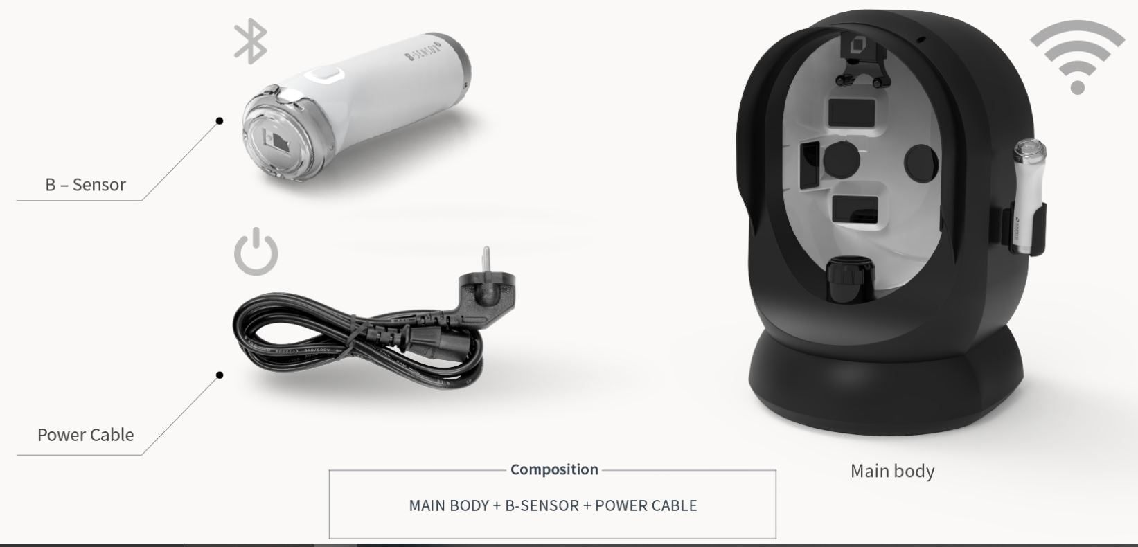 Con análisis de rostro completo con un clic, el A-ONE W ofrece escaneos instantáneos y de alta resolución desde los ángulos frontal, izquierdo y derecho usando iluminación multiespectral avanzada (normal, UV y polarizada). Su cámara inteligente y la tecnología B-sensor analizan ocho métricas esenciales de la piel, proporcionando datos precisos sobre poros, arrugas, sebo, pigmentación, tono de piel, temperatura, humedad y elasticidad.