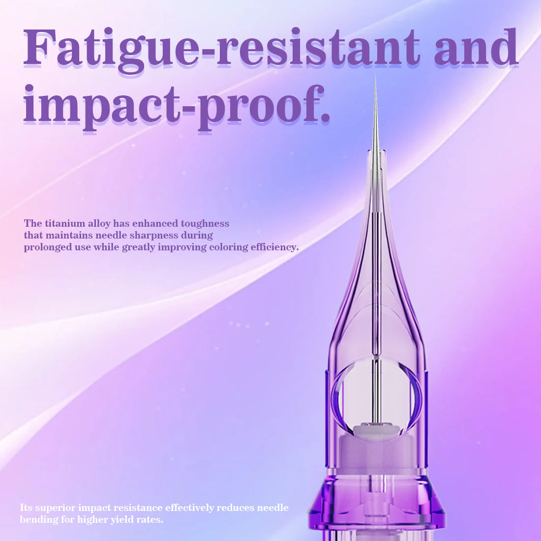 - Aguja de titanio premium: Construidas con aleación de titanio, estas agujas ofrecen 3 veces la durabilidad del acero inoxidable 304 estándar. Mantienen un rendimiento afilado como una navaja durante sesiones prolongadas, minimizando interrupciones y mejorando el flujo de trabajo.