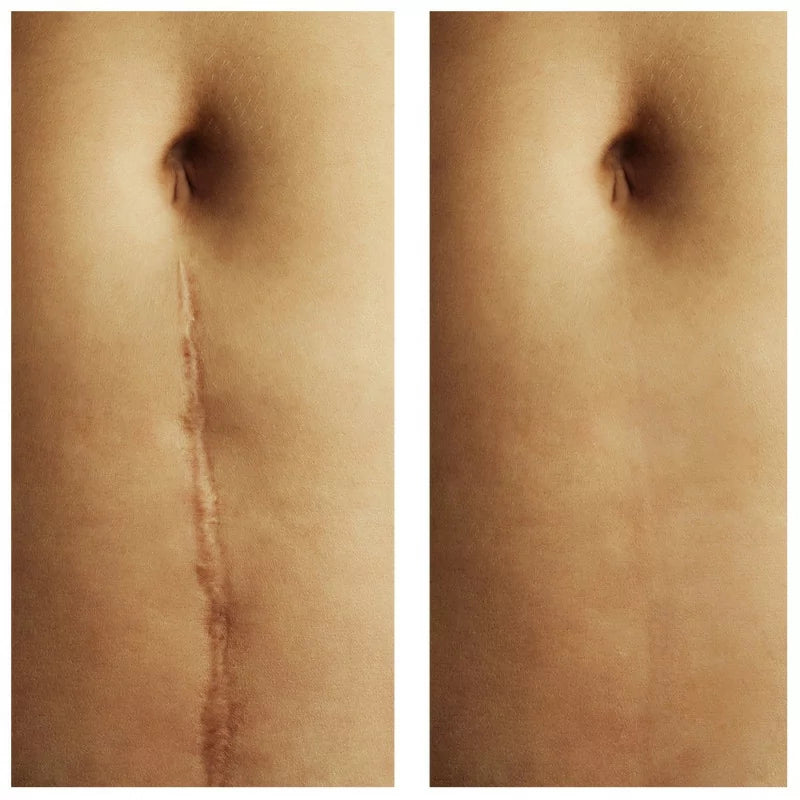 Al promover la distribución uniforme del colágeno y fomentar la normalización del tejido cicatricial, esta fórmula puede reducir significativamente el tamaño, grosor y decoloración de las cicatrices con el tiempo. Es especialmente efectiva para cicatrices elevadas y engrosadas como las hipertróficas y queloides, pero también puede usarse en cicatrices quirúrgicas, por lesiones o quemaduras. La inclusión de ingredientes calmantes como la alantoína y el extracto de regaliz ayuda a calmar la irritación y apoyar el proceso natural de curación de la piel.