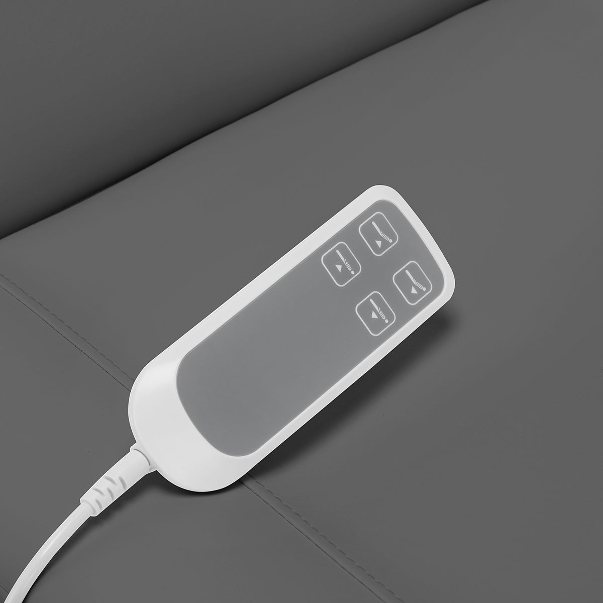 Usando un control remoto fácil de usar, la silla se ajusta suavemente en 2 planos: tiene ajuste de altura y respaldo. La altura del asiento puede ajustarse de 61 cm a 84 cm, y cuando está completamente extendida, la silla alcanza una longitud de 2 m. Estas dimensiones permiten que el equipo sea utilizado fácilmente por personas de diferentes alturas y permiten adaptarlo al tratamiento actual y a las necesidades individuales, lo que afecta tanto la comodidad del usuario como de la persona que realiza el servicio. Las asas ubicadas a ambos lados del asiento permiten colgar el control remoto para que siempre esté a mano.