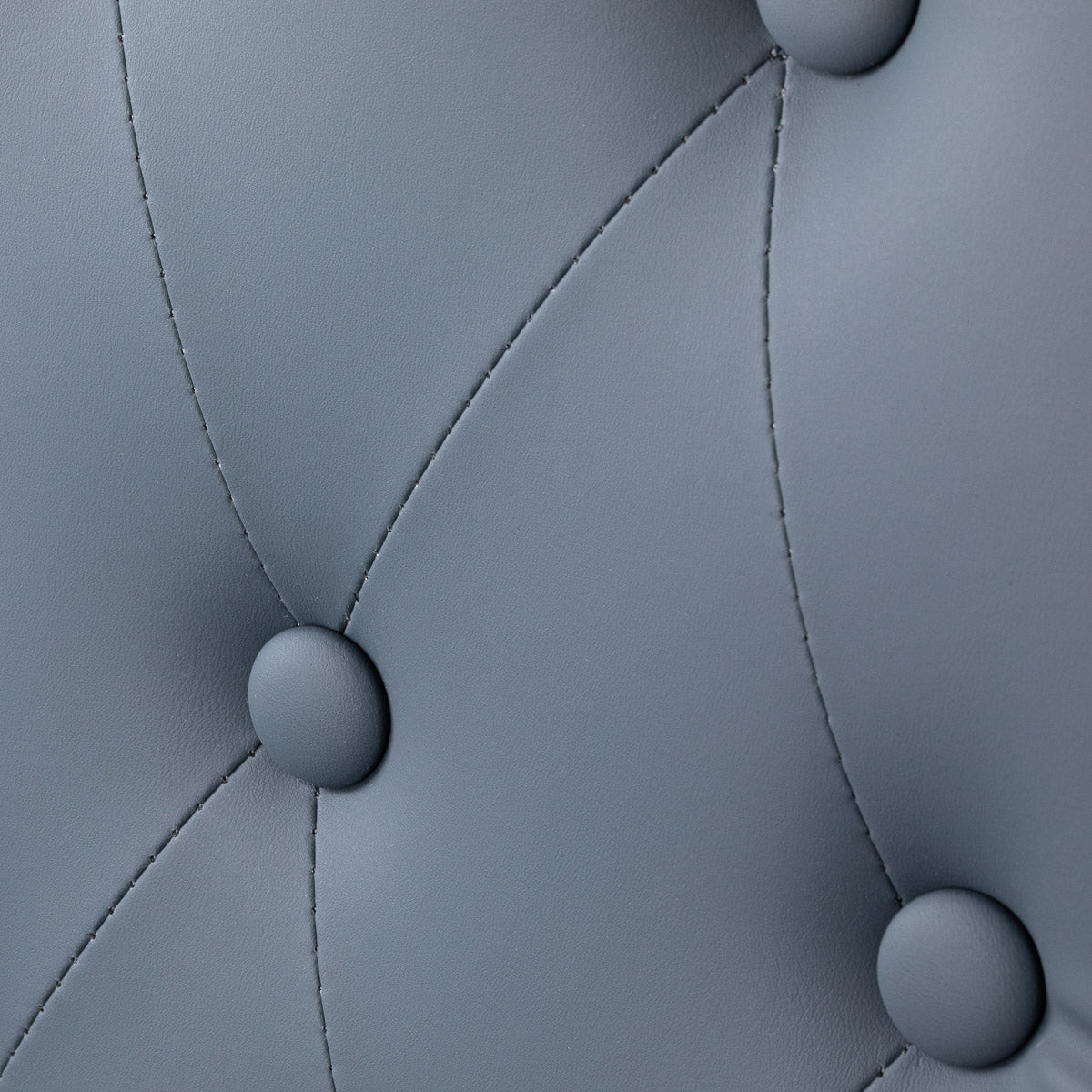 La construcción estable de la base con elementos en tonos negros garantiza un alto confort de uso. El relleno con espuma duradera y resistente a la deformación y el tapizado de cuero sintético agradable al tacto aseguran la durabilidad del mueble y su uso cómodo durante mucho tiempo. También hacen que el equipo sea resistente a la humedad, duradero y fácil de limpiar. La cubierta en tonos grafito junto con el acolchado original y los botones decorativos le dan un carácter único. Los elementos decorativos de diseño inspirados en motocicletas, que hacen referencia al estilo vintage, encajarán perfectamente en la atmósfera de las barberías, creando su increíble aura.