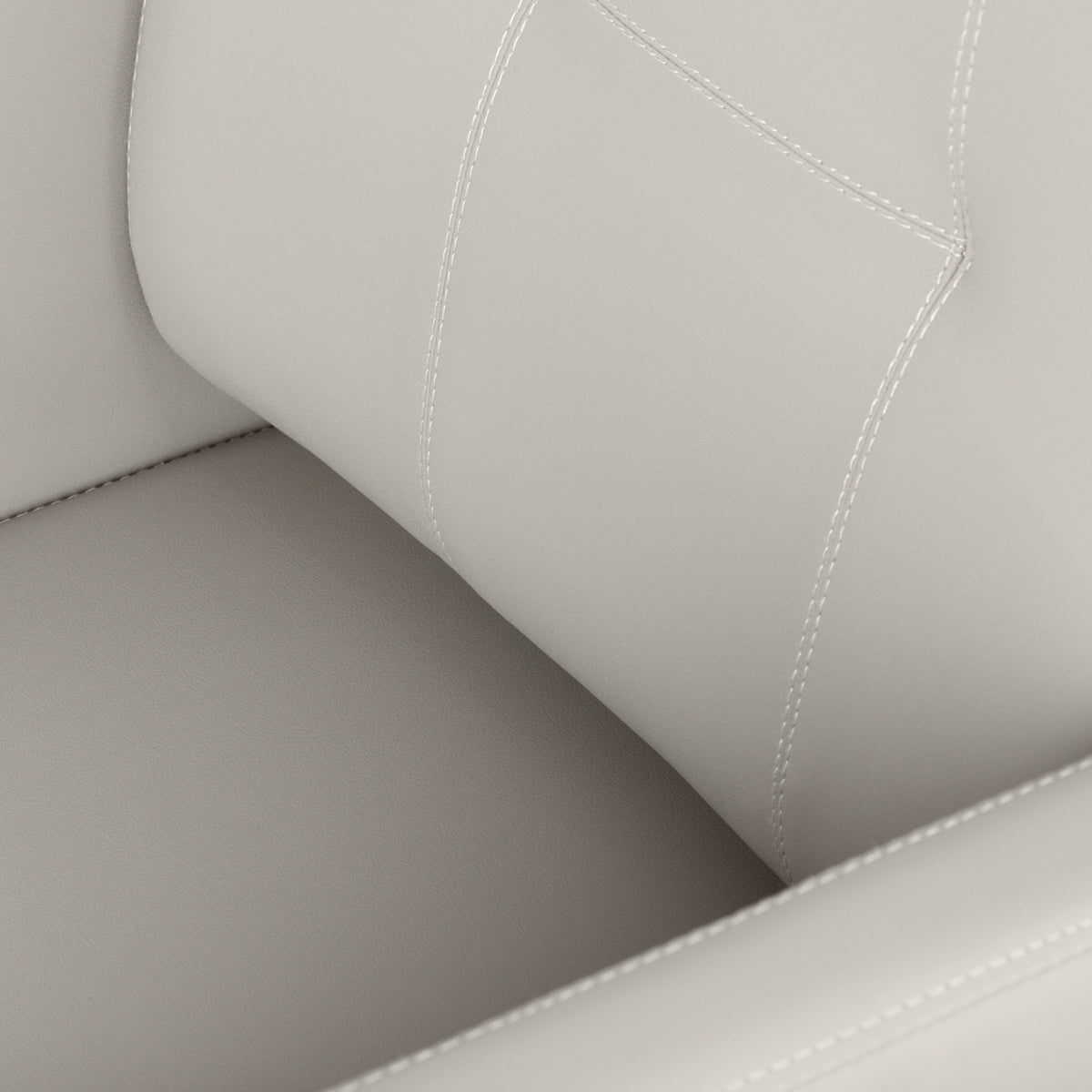 La elegancia de este sillón se complementa con el acabado plateado de la base.