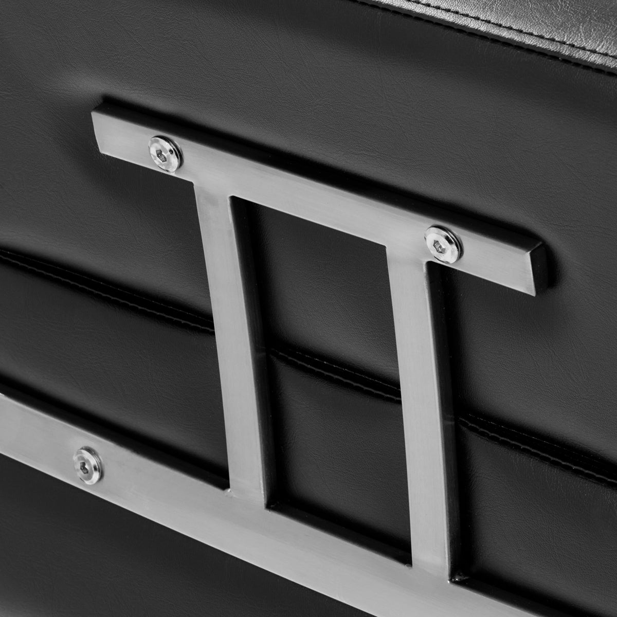 El relleno con espuma duradera y resistente a la deformación y la tapicería de cuero sintético agradable al tacto aseguran la durabilidad del mueble y su uso cómodo durante mucho tiempo. También hace que el equipo sea resistente a la humedad, duradero y fácil de limpiar. La cubierta negra le da un carácter único. El equipo se destaca por un diseño moderno, que hace que el sillón luzca genial en muchos salones profesionales.