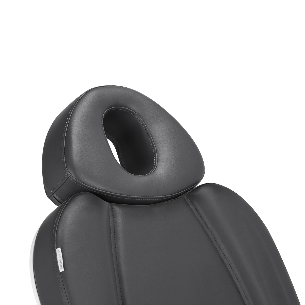 La abertura en el reposacabezas es perfecta para servicios durante los cuales el cliente se coloca boca abajo (por ejemplo, masajes). El conjunto incluye una cubierta para el agujero en el reposacabezas y una almohada cómoda, que facilitan la realización de una amplia gama de tratamientos tanto para el rostro como para el cuerpo. Los reposabrazos son móviles, pueden colocarse en posición vertical o girarse 180º, y son fácilmente desmontables, lo que facilita el acceso directo al cliente.
