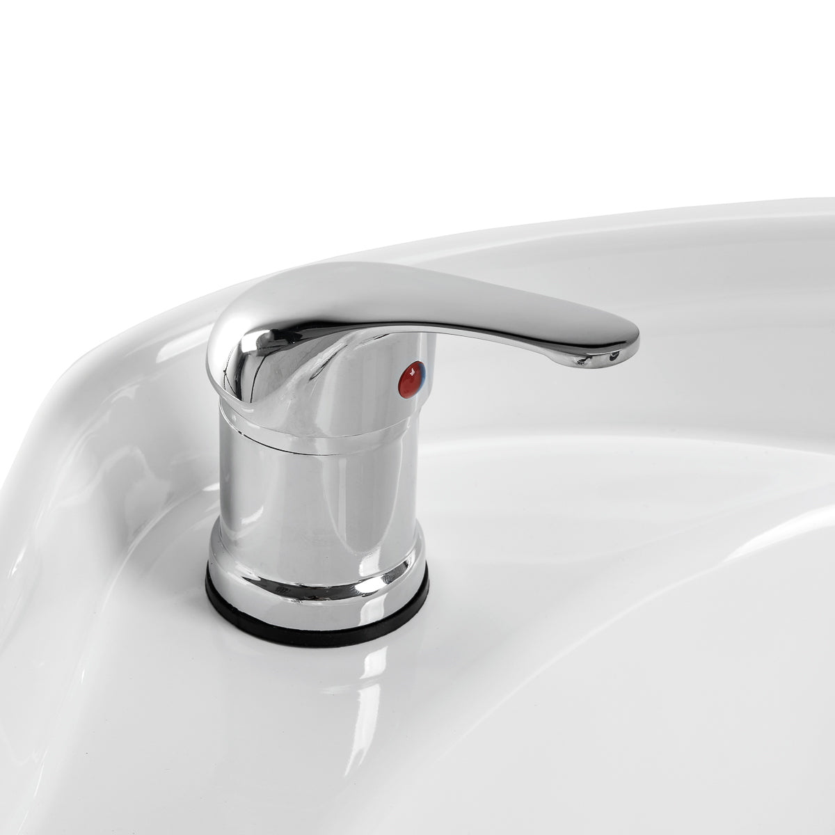 La profundidad adecuada del cuenco de cerámica blanca evita salpicaduras excesivas de agua y productos usados durante el tratamiento. Permite realizar cómodamente y de manera efectiva una amplia gama de servicios. La movilidad del cuenco permite ajustar fácilmente su ángulo de inclinación a las necesidades individuales. El material utilizado hace que el lavabo sea duradero, resistente a la decoloración y a los arañazos, y muy fácil de mantener limpio. Un collarín correctamente perfilado proporciona soporte y comodidad óptimos al lavar el cabello, y una cubierta plástica cómoda en tonos negros hace que el cliente no sienta la incomodidad de la fría superficie cerámica.