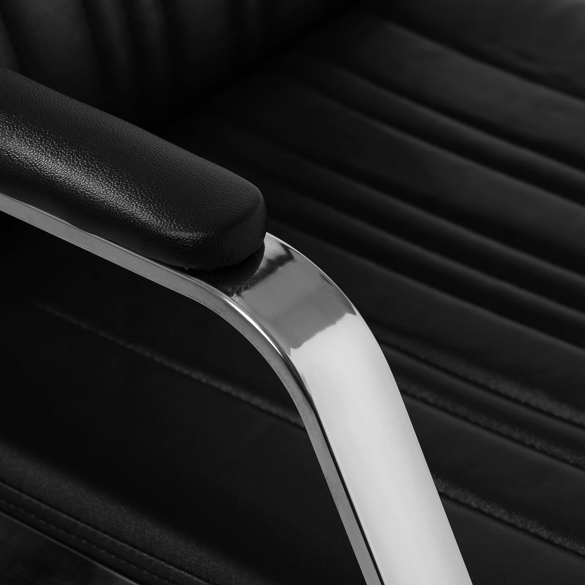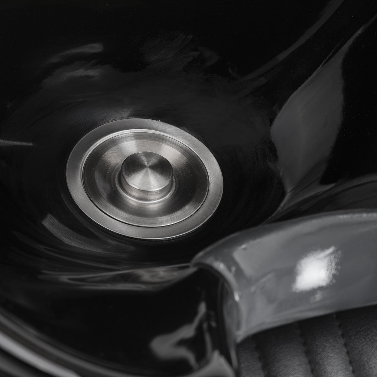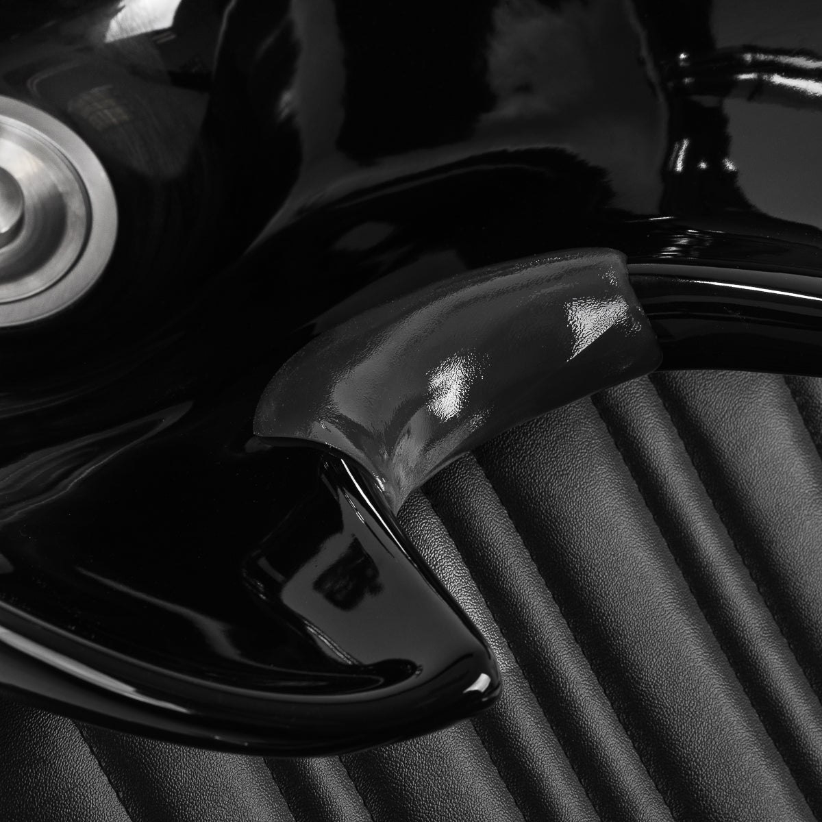 El asiento perfilado, relleno con espuma duradera, asegura comodidad, mientras que los reposabrazos tapizados facilitan la correcta posición de los hombros del cliente. El respaldo colocado en un ángulo óptimo promueve un excelente soporte para la columna vertebral. La cubierta de cuero sintético en tonos negros garantiza durabilidad a largo plazo y fácil limpieza. Las costuras elegantes en la tapicería le dan al lavacabezas un carácter inspirado en el diseño automotriz, enfatizando su impresionante apariencia visual. Viene con accesorios completos en tonos cromados y negros, incluyendo un grifo, ducha de mano y mangueras dedicadas para asegurar un conjunto completo de herramientas para el trabajo.