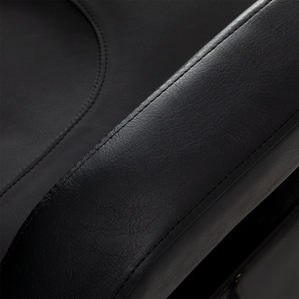 La base circular estable con acabado dorado le da a la silla una apariencia llamativa y garantiza estabilidad durante el trabajo. El asiento, respaldo y reposapiés están rellenos con espuma resistente a deformaciones y tapizados en cuero sintético negro, agradable al tacto, para durabilidad y alto confort. La superficie resistente a la humedad y de fácil cuidado hace que la silla sea perfecta para el uso diario. Los detalles dorados y las líneas distintivas del tapizado enfatizan el carácter exclusivo del mueble, dándole un estilo moderno, ligeramente automotriz. El diseño elegante se integra perfectamente en la decoración de las barberías.