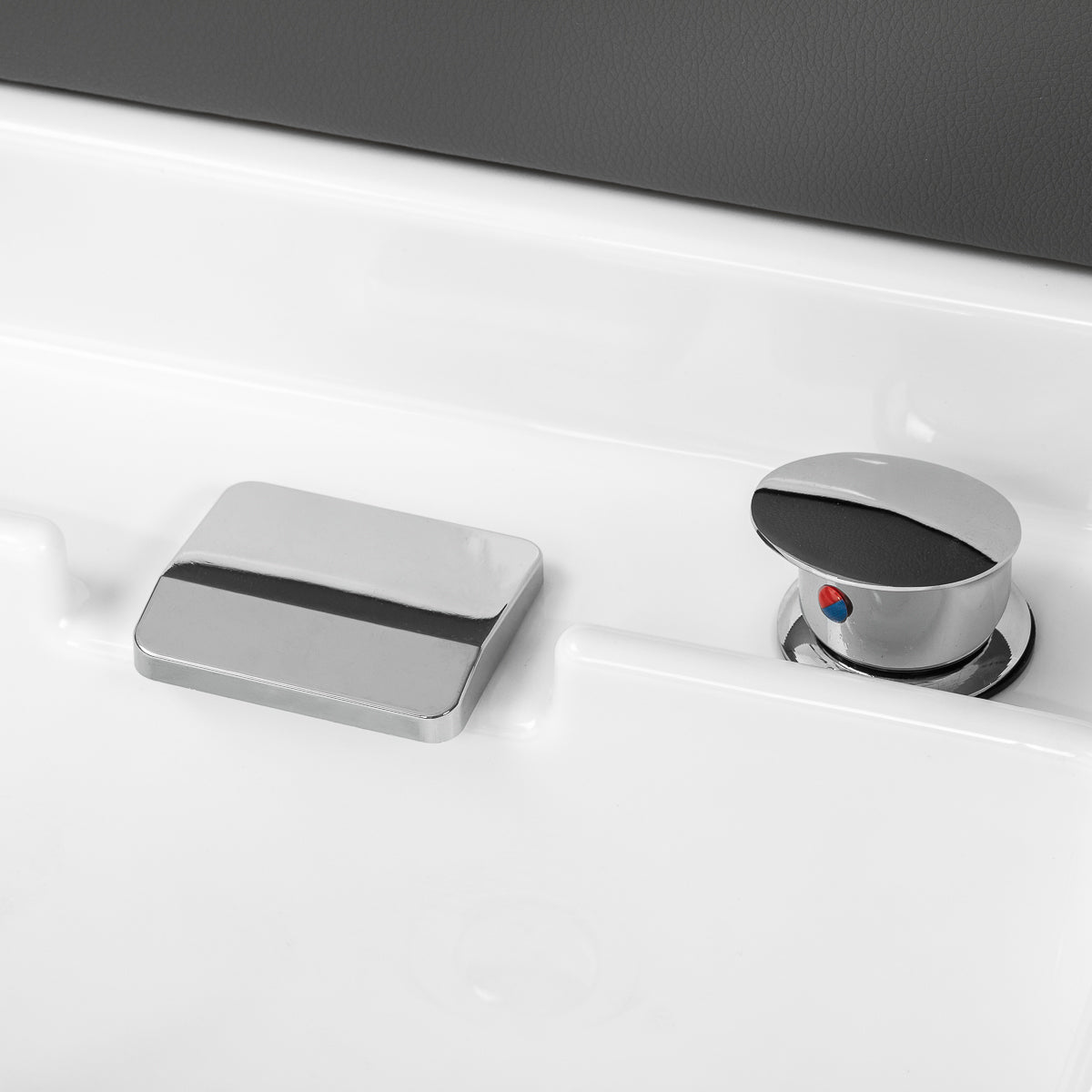 Una cubeta cerámica profunda en tonos blancos reduce eficazmente las salpicaduras de agua y productos usados durante los tratamientos, asegurando limpieza y comodidad de trabajo. Fabricada con material duradero, la cubeta es resistente a la decoloración, rayaduras y daños, y su superficie lisa facilita excepcionalmente la limpieza. Su perfil distintivo no solo facilita el acceso para la persona que realiza el servicio sino que también le da a la unidad de lavado un aspecto elegante y moderno. La combinación de estética y funcionalidad eleva el estándar de cualquier espacio profesional.