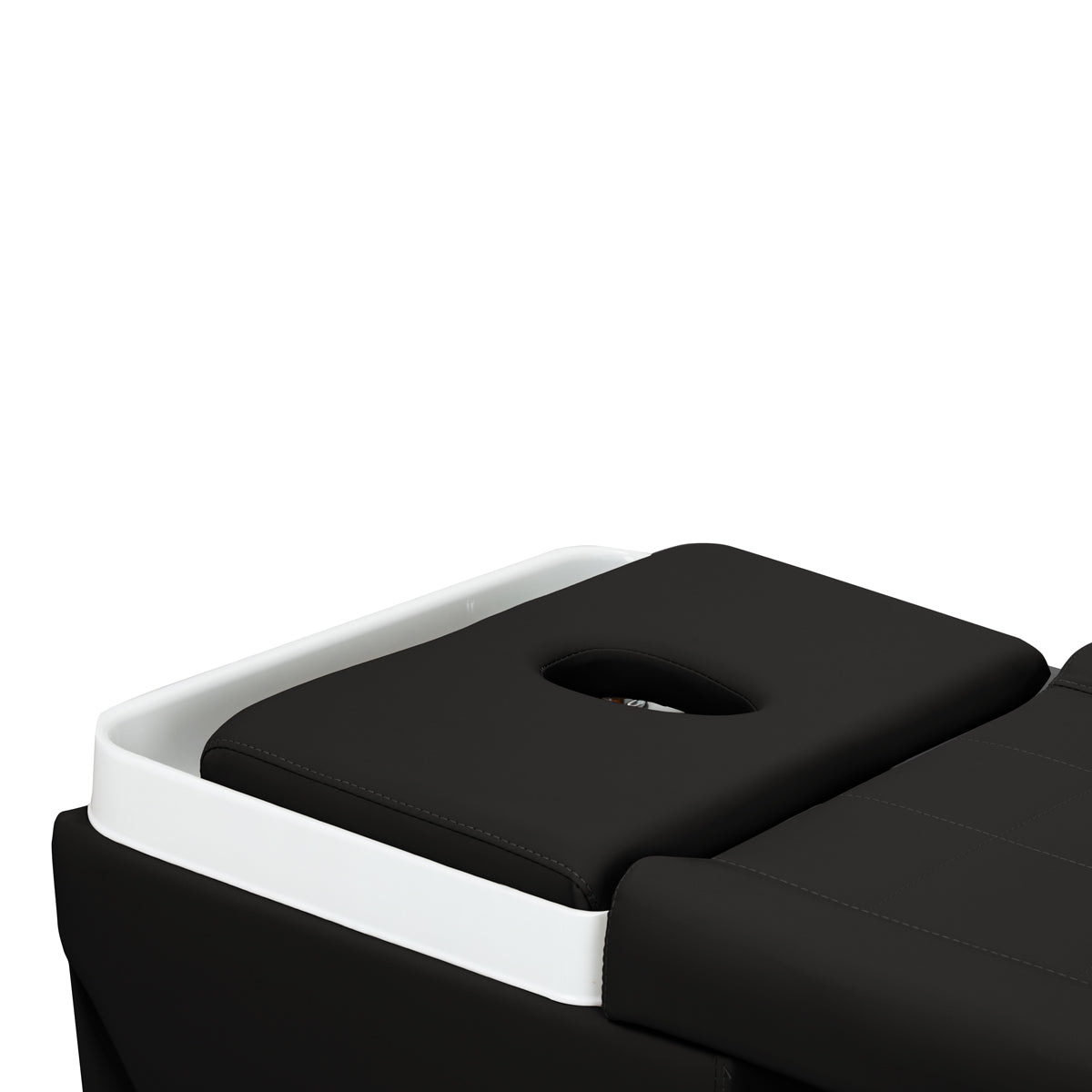 El reposacabezas ajustable, con opción de extensión y cambio del ángulo de inclinación, permite una adaptación perfecta a las necesidades del usuario, asegurando el máximo confort. El conjunto también incluye cojines ergonómicos, entre ellos un reposacabezas con abertura facial, que amplía el rango de aplicaciones – desde tratamientos del cuero cabelludo hasta masajes y diversas terapias corporales y faciales. Estas características prácticas hacen del sillón un equipo versátil para salones de belleza y bienestar, combinando comodidad para el cliente con la funcionalidad necesaria para el profesional.