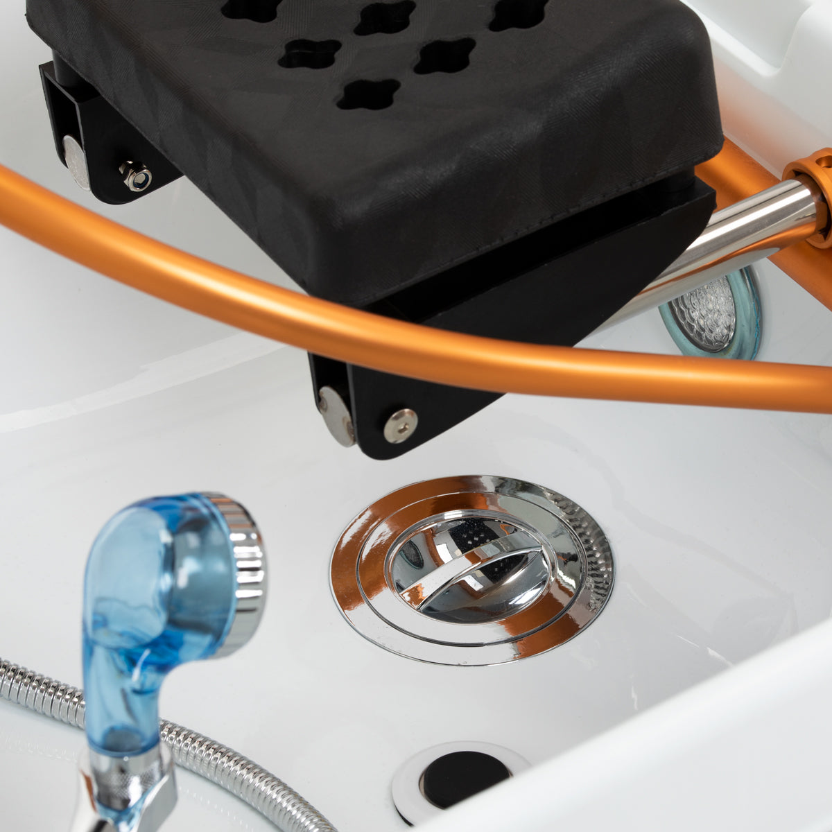 El arco dorado con ángulo de inclinación ajustable, diseñado para el Waterfall Head SPA, es una solución innovadora que permite un cuidado completo del cuero cabelludo. Los chorros de agua actúan como un masaje natural, mejorando la circulación sanguínea, reduciendo la tensión y el estrés, y aliviando molestias como dolores de cabeza y rigidez en el cuello. El flujo de agua controlado con precisión favorece la regeneración capilar e hidrata intensamente la piel. Gracias a un sistema inteligente de circuito cerrado, el arco toma el agua de la cubeta y la reutiliza, proporcionando un masaje continuo con agua. Una combinación de tecnología y relajación que apoya la salud y el bienestar del cabello.