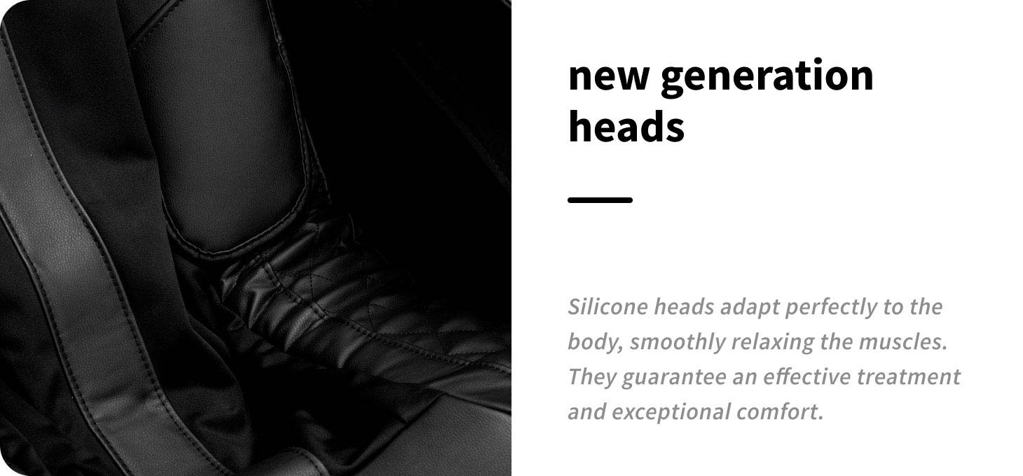 Four high-quality massage heads are responsible for the precise treatment of the entire back area. Their multi-directional action allows them to reach tense areas accurately and effectively relax the muscles. The modern heads, made of flexible silicone, adapt to the shape of the body, ensuring even pressure and high comfort even during more intense sessions. The material used increases the effectiveness of the massage and provides a natural, smooth sensation similar to that of human hands.