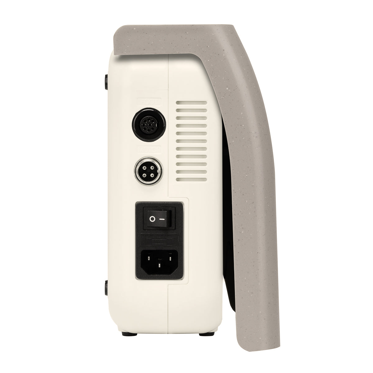 Usando la perilla, puede ajustar la velocidad del cabezal hasta 50,000 revoluciones por minuto, y la velocidad actual se muestra en una pantalla digital. Esto permite un ajuste eficiente a las necesidades individuales y la realización cómoda de una amplia gama de tratamientos. Los botones permiten cambiar rápidamente al accionamiento por pie, cambiar la dirección de rotación y detener el dispositivo (función de pausa), proporcionando control total sobre el taladro de uñas y facilitando la adaptación de su funcionamiento a los servicios realizados. Los indicadores LED informan sobre el estado del dispositivo, mostrando la dirección de rotación, activación del accionamiento por pie, habilitación de la función de crucero automático y pausa. El funcionamiento del dispositivo es simple, eficiente e intuitivo, lo que sin duda será apreciado por los usuarios más exigentes.
