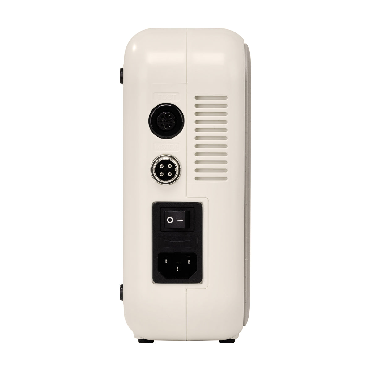 Usando la perilla, puede ajustar la velocidad del cabezal hasta 50,000 revoluciones por minuto, y la velocidad actual se muestra en una pantalla digital. Esto permite un ajuste eficiente a las necesidades individuales y una realización cómoda de una amplia gama de tratamientos. Los botones permiten cambiar rápidamente al pedal, cambiar la dirección de rotación y detener el dispositivo (función de pausa), proporcionando control total sobre el taladro de uñas y facilitando la adaptación de su funcionamiento a los servicios realizados. Los indicadores LED informan sobre el estado del dispositivo, mostrando la dirección de rotación, activación del pedal, habilitación de la función de crucero automático y pausa. El funcionamiento del dispositivo es simple, eficiente e intuitivo, lo que sin duda será apreciado por usuarios más exigentes.
