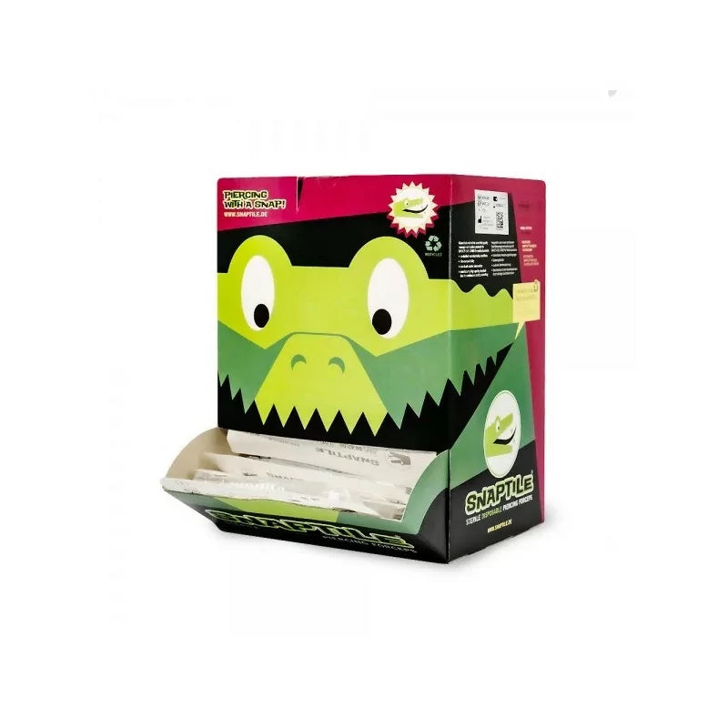 Adecuadas para una amplia variedad de usos, las pinzas SNAPTILES pueden emplearse para perforaciones en orejas, nariz, cejas, lengua y otras partes del cuerpo, convirtiéndolas en una solución desechable versátil para estudios con alta demanda.