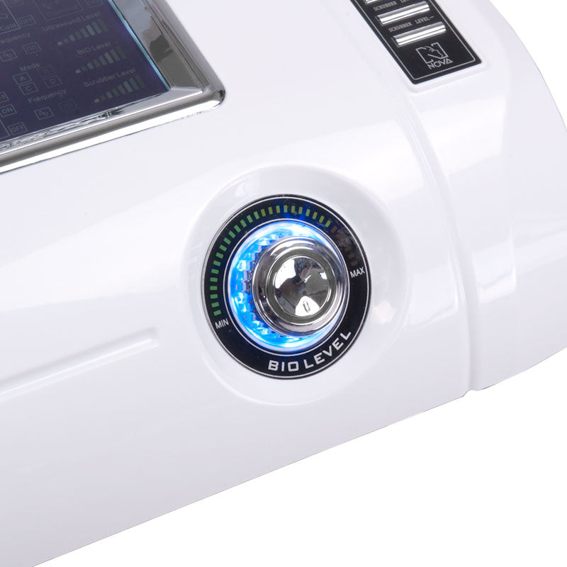 Función de ultrasonidos. Uso de vibraciones ultrasónicas con una frecuencia de un millón de oscilaciones por segundo (1,5 MHz). La onda ultrasónica estimula el tejido y mejora la permeabilidad de las membranas para el colágeno, suavizando las arrugas, eliminando líneas y tonificando la piel, lo que le da un aspecto más joven y saludable. Los ultrasonidos generan calor por fricción, que mejora la circulación sanguínea, relaja los músculos y ayuda a romper la celulitis, eliminando el exceso de grasa. El dispositivo con 2 sondas permite un lifting no invasivo, suaviza y fortalece la piel mediante vibraciones ultrasónicas.