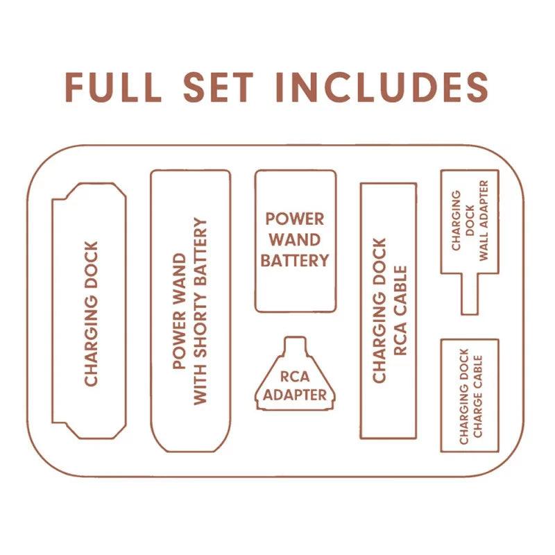 El set incluye tanto un Power Wand Battery Pack (1500mAh) como un Shorty Battery Pack (800mAh), brindándote la flexibilidad para equilibrar el tiempo de uso y el peso según las necesidades de tu sesión. -