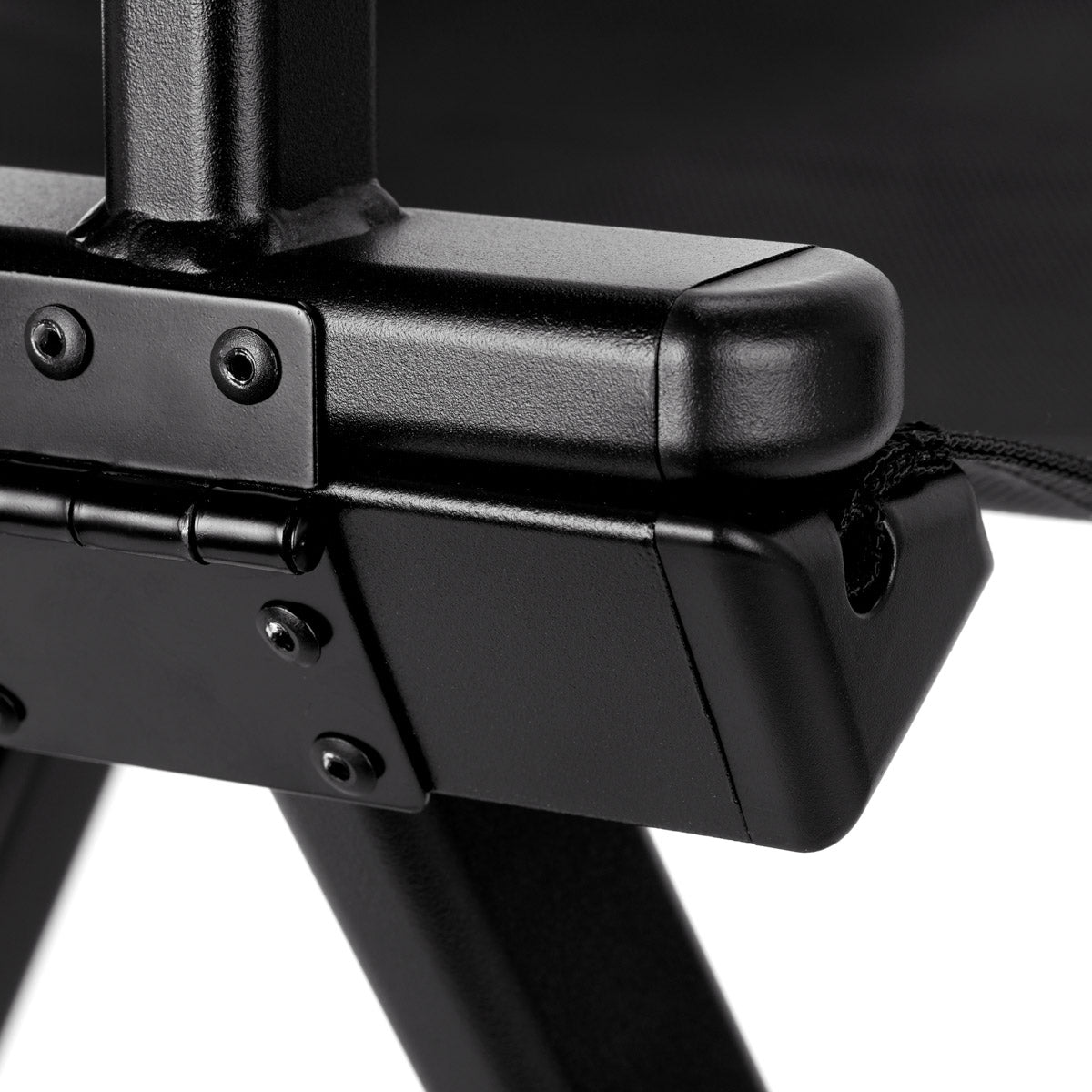 La silla cuenta con un sistema de bloqueo, que garantiza estabilidad durante su uso. Una vez desbloqueada, se puede plegar fácilmente, lo que facilita enormemente el almacenamiento y transporte. Los reposabrazos minimalistas y un reposapiés con un ancho de casi 40 cm proporcionan al usuario comodidad y confort durante el maquillaje. Junto con el respaldo, permiten adoptar la posición correcta, lo cual es especialmente importante durante tratamientos prolongados. Las soluciones aplicadas hacen que la silla sea extremadamente práctica, ofrecen mucho espacio de trabajo a quienes brindan servicios móviles y funcionarán bien incluso en las condiciones más inusuales.