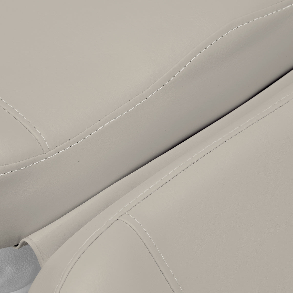 La silla está rellena con espuma contorneada y cubierta con cuero sintético agradable al tacto en tonos beige. El material utilizado hace que el equipo sea fácil de limpiar, además de resistente a la humedad y a desinfectantes seleccionados. Una base sólida hecha de material duradero en tonos blancos garantiza estabilidad durante los tratamientos. Los dobladillos correctamente perfilados le dan a la silla un aspecto elegante y hacen que el asiento sea ergonómico. El diseño minimalista, sencillo y los colores clásicos permiten que se adapte a cualquier interior.
