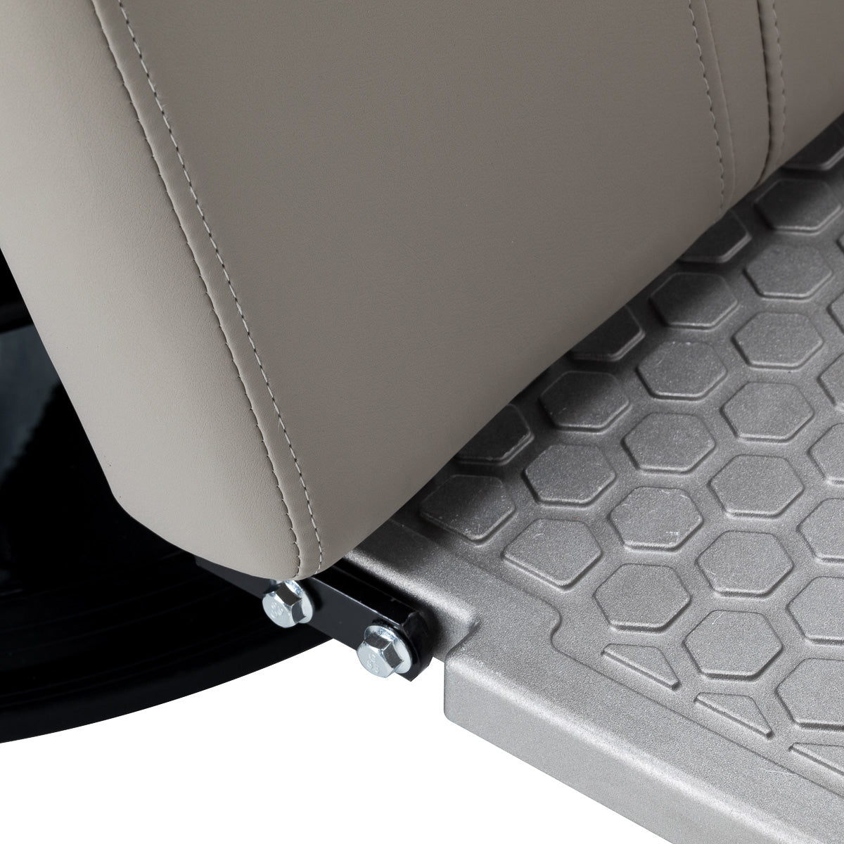 El asiento cómodo asegura la comodidad del cliente durante una variedad de servicios. El respaldo alto ofrece un sólido soporte para la espalda, promoviendo una posición cómoda y estable. El mecanismo de rotación completa aumenta la libertad de movimiento y mejora la organización del trabajo. Los reposabrazos tapizados, posicionados a la altura óptima, favorecen la correcta colocación de los brazos del cliente, reduciendo la tensión en los hombros.