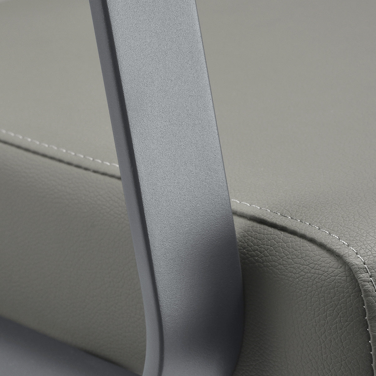 La silla perfilada proporciona un soporte lumbar adecuado y, por lo tanto, una alta comodidad de uso. Los reposabrazos metálicos en tonos de gris con forma geométrica permiten la correcta colocación de los hombros del cliente. El relleno con espuma duradera y resistente a la deformación y la tapicería de cuero sintético agradable al tacto en tonos de gris aseguran la durabilidad del mueble, facilidad de limpieza y uso cómodo durante mucho tiempo. La apariencia original y elegante de la unidad de lavado de cabello le da al interior una expresión única. El conjunto incluye accesorios completos en tonos negros, incluyendo un grifo, una ducha y mangueras dedicadas para proporcionar un conjunto completo de herramientas para el trabajo.