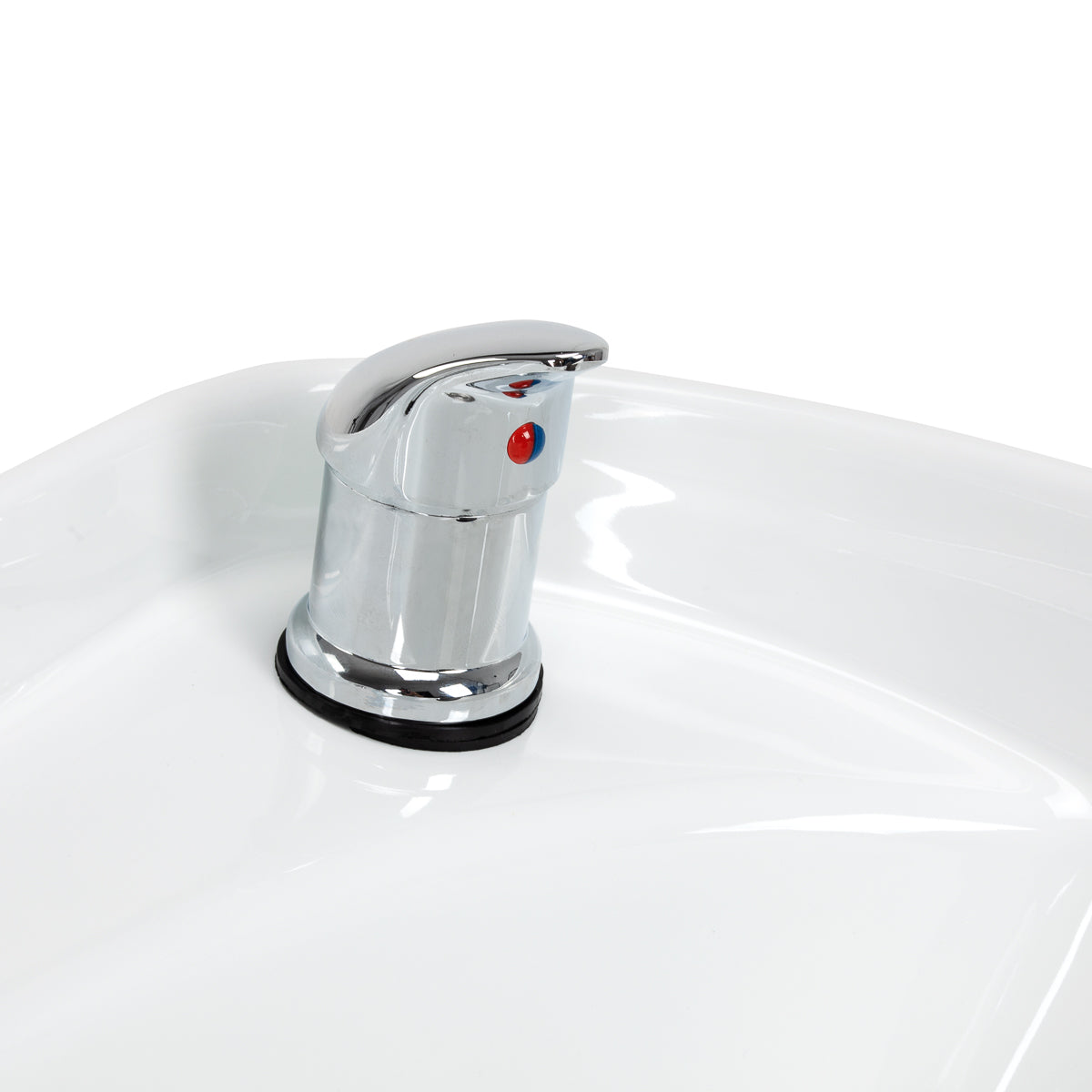 La profundidad del lavabo cerámico en tonos blancos permite realizar cómodamente y de manera eficiente una amplia gama de servicios de peluquería, evitando salpicaduras excesivas de agua y productos usados durante el tratamiento. El material utilizado hace que el lavabo sea duradero, resistente a la decoloración y a los arañazos, y muy fácil de mantener limpio. El cuello perfilado y el respaldo inclinado proporcionan soporte y comodidad al lavar el cabello, y gracias a la cobertura plástica cómoda en tonos negros, el cliente no sentirá incomodidad por la fría superficie cerámica.
