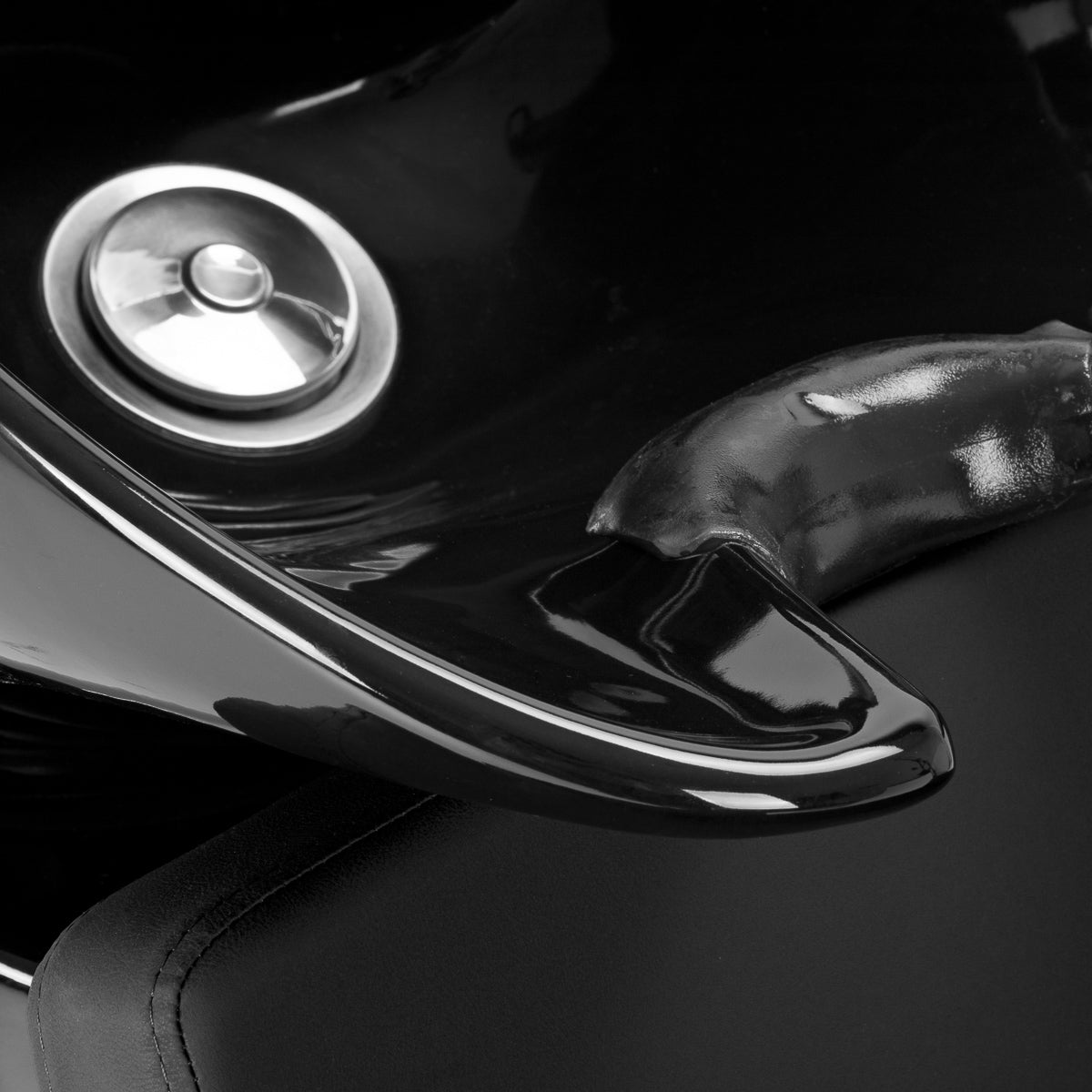 El cuenco profundo de cerámica en tonos negros minimiza las salpicaduras de agua y productos durante los tratamientos. El ángulo ajustable del cuenco permite una adaptación precisa a las necesidades del cliente. Fabricado con material duradero, es resistente a la decoloración, arañazos y productos químicos, y su superficie lisa facilita la limpieza. El cuello ergonómicamente contorneado ofrece un soporte cómodo para la cabeza, y la cubierta de plástico negro elimina la sensación de frío al contacto con la cerámica.