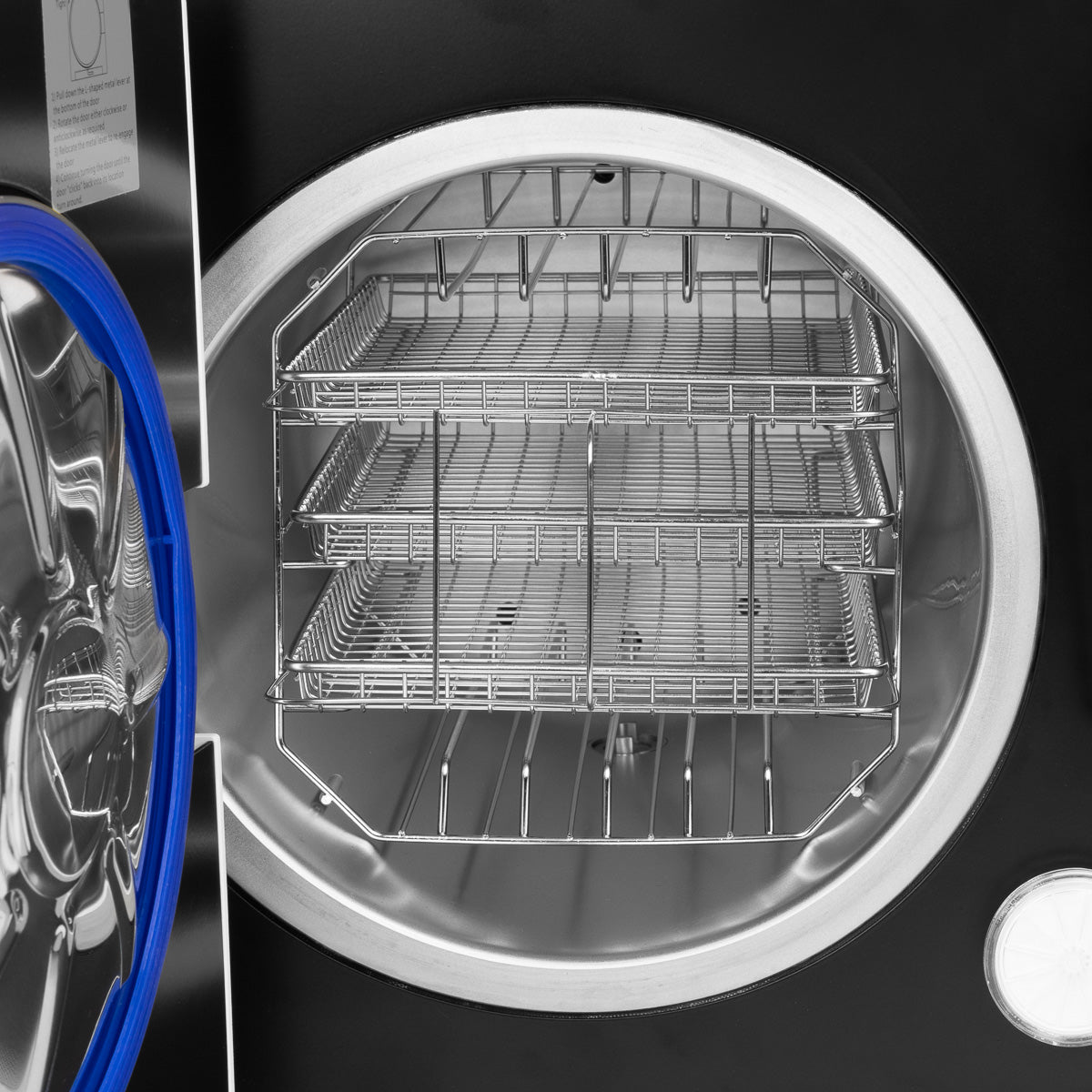 | Capacidad 23 L | La gran capacidad le permite esterilizar más herramientas y artículos. Perfecto para un consultorio dental, instalaciones universitarias, salas de hospital o clínica privada. |