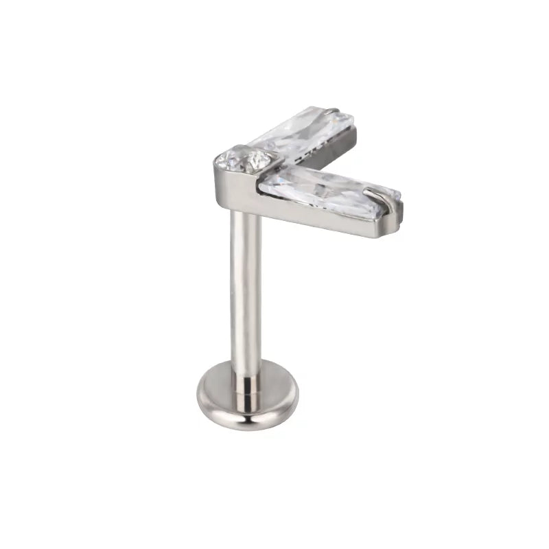 Accesorio para piercing de titanio grado implante con un diseño moderno de cristal de doble rectángulo, diseñado para precisión, comodidad y rendimiento profesional.